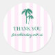 The design features a charming preppy pink striped background that adds a touch of elegance and femininity, creating a vibrant and welcoming atmosphere. Adorning the design are green hand-drawn palm trees that evoke the lush beauty of Palm Springs, adding a playful, tropical flair. The mid-century modern inspired handwritten script font adds a personal.