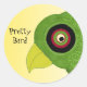 A cool design featuring the face of a green parrot on a yellow background. The saying can be changed as desired.