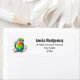 Address labels with a cute parrot illustration. A little green parrot with blue and yellow colors blending together. Neck has a vibrant shade of reddish pink.