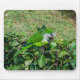 Painting of wild green parrot on the green bush in a park in Spain. Also known as the Monk parakeet or Quaker parrot