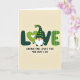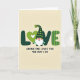 Perfect for sharing a St. Patrick’s Day hello, this card centers the word “LOVE” in a mix of green patterns, with each letter styled differently for a cozy, friendly feel 💚. The “L” is filled with small green polka dots, while the “V” becomes a deep green heart that holds a small white heart in the middle, like a quiet promise between close hearts. Instead of an “O,” a gnome stands in, his round rosy nose and small smile peeking out from under a full white beard as if he’s in on a sweet inside joke. He wears a tall green plaid hat topped with a three-leaf clover ☘️, leaning slightly forward like he’s offering affection without making a fuss. The “E” finishes the word with neat vertical green stripes, and everything sits on a soft creamy beige background that keeps the greens looking rich and inviting. Beneath the big “LOVE” graphic, the line “GNOME ONE LOVES YOU THE WAY I DO” appears centered in black lettering, clear and easy to read. Share a little St. Patrick’s Day cheer with someone you care about and pass along St. Patrick’s Day sentiments.