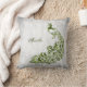 This green Peacock Personalized Throw Pillow is a visually striking item, featuring a vibrant metallic peacock with iridescent feathers shimmer with green tones, creating a bold and luxurious focal point. Set against a gray grunge background, adorning the design are delicate white leaf botanicals, intricately woven around the peacock. These leaves, rendered in crisp, clean lines, resemble delicate vines, adding a touch of elegance and nature-inspired softness, softening the grunge background’s roughness while complementing the peacock’s regal presence. Elegant script allows you to add your name or recipient's name for a more personalized home decor gift.