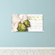 Farmhouse Style Green Pears on canvas, a layered design with watercolors painted of pears and the memories saying on canvas. Great for a modern or farmhouse kitchen . The painted green pears are layered over translucent architectural angles, musical notes and the memories to be recalled.