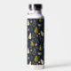 Green Pear Watercolor Pattern on Dark Blue Water Bottle
