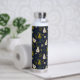 The pattern on this water bottle showcases beautifully hand-painted watercolor pears in lush green tones, surrounded by flowing leaves and subtle floral details. The deep navy background enhances the vibrancy of the artwork, creating a sophisticated botanical design that feels both organic and timeless.