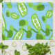 Green Peas is a vintage modern stylized pattern with peas in pods ready for picking in shades of green on blue.