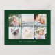 Dark Green Personalized 6 family photos professional sage green Universal Greetings Postcards featuring a stylish photo collage with 6 customized images, your greetings message in elegant handwritten script font, your name, date, year, message on the back in a modern and simple sans serif font.