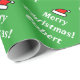 Personalized name green Santa Claus hat Christmas wrapping paper. Personalizable giftwrap text for custom seasons greetings and name of child. Customizable background color and text for your Holiday wishes or funny note. Surprise your friends and family during the Holidays. Cute custom Santa Clause hat design for xmas party favors and presents. Suitable for men, women and kids (boys or girls). Whimsical typography. Green and red colors. Fun gift wrap for mom, dad, son, daughter, sister, children etc. Custom DIY X-mas accessories and supplies for wrapping presents. Add your own name to this template.