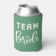 This Green Personalized Team Bride Can Cooler is perfect to keep your drinks cool. Cool colors and a retro font make this cooler perfect for a bachelorette party.