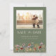 Green Photo Floral QR Code Save The Date. This stylish & elegant wedding save the date features gorgeous hand-painted watercolor wildflowers arranged as a lovely bouquet perfect for spring, summer, or fall weddings. Find matching items in the Sage Green Boho Wildflower Wedding Collection.