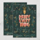 Green pine illustration gold cool Merry Christmas Holiday Card