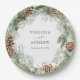 Elevate your reception with our Green Pine Paper Plates, part of the "Elegant Winter Pinecone Greenery Wedding Suite." Featuring hand-painted greenery and pine boughs, these plates add a cohesive and elegant touch to your tablescape, making every detail of your celebration feel special.