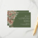 Green Pine Wedding Details Enclosure Card. Guide your guests with ease using our horizontal wedding details card, featuring a side bouquet on a green background. Part of the "Elegant Winter Pinecone Greenery Wedding Suite," this card combines essential information with hand-painted elegance, ensuring a cohesive and captivating aesthetic.