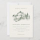 Green Pine Woods Mountain Sketch Wedding Invite