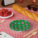 pink and bright blue dots on a dark green background, this playful design is perfect for modern home decor, fun accessories, and unique gift wrapping.