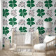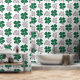 Green Pink Clover Shamrock Hand Drawn Pattern Wallpaper. Beautiful and simple 4 leaves clovers on green and pink colors on a white background. The design is a digital drawing.