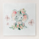 Green Pink Cute Floral Elephant Frame Baby Shower Jigsaw Puzzle