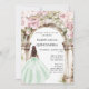 Green pink florals arch dress Quinceanera Invitation