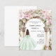 Green pink florals arch Sweet 16 invitation