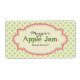 These labels feature a green and pink geometric pattern, with a fully customizable front.