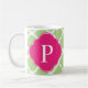 Green Pink Quatrefoil Monogram Coffee Mug