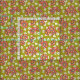 This nostalgic fabric features a 70s retro large hand drawn floral pattern in pink, orange and white on a green background.