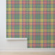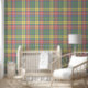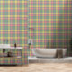 My original artwork is featured on this fun wallpaper, consisting of a plaid pattern in green, pink and yellow dominating the basic stripes. The size of this one is 2 feet x 8 feet, but you can choose other size options. This peel and stick wallpaper is in textured vinyl or you can choose smooth vinyl as well.