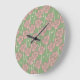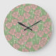 Green Pink Rose Retro Y2K 70s Flower Pattern Large Clock