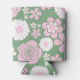 Green Pink White Retro Y2K 70s Flower Pattern Can Cooler