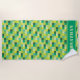 This personalized beach towel for gamers features a green and yellow pixelated pattern inspired by video game graphics. A template area at the bottom is provided for you to personalize with your name or other text. Click "Customize It" to change the size of the pattern or to make other design changes.