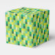 This party favor box features a pixelated pattern of squares in shades of green designed with geeks and gamers in mind. The pattern resembles 16 bit images used in many popular video and computer games.