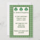 Green and white plaid is the background for this St. Patrick's Day party invitation, with three lucky green shamrocks of Celtic knots at the top of a green and cream frame. The back is a solid parchment color, matching the inside of the frame on the front.