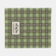 Accent your rustic home, cottage or vacation cabin with this green, and gray plaid pattern throw blanket accented with hints of light blue and a deer silhouette. Edit the monogram and text captioning as desired and look for other coordinating items in this design collection at Camp_and_Cottage on Zazzle.com.