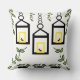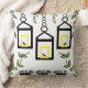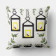 Green Plants Birds Nature Pattern Throw Pillow. Green indoor house plants, decorative lanterns, colorful birds botanical nature pattern.