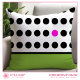 Freshen up your indoor or outdoor living spaces with this fun throw pillow that features playful black and white polka dots, bold color blocking, and an unexpected touch of pink. This design is modern and minimalist, and it will make a fun addition to a living room, bedroom, porch, or patio. Also makes a great housewarming gift for new homeowners.