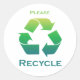 Remind people to recycle with these stickers featuring a green recycle sign and the text "Please Recycle".