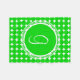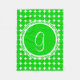 Green dots in close quarters create a secondary pattern of white stars. A large green circle is surrounded by white lines, while a single white initial graces the center.