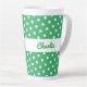 Enjoy retro elegance wtih your latte with this green and white polka dot latte mug. The vintage-style pattern creates a simple and timeless look. Personalize the mug with the recipient's name for a stylish individual gift.
