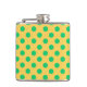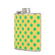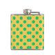 Green polka dots on yellow hip flask