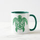 A bright green Polynesian sea turtle ("honu" in Hawaiian). The tropical turtle is designed in a tribal tattoo style.