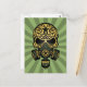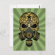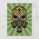 This post apocalyptic skull is equipped with a large gas mask. Intricate lines and swirls decorate the forehead and cheeks in the style of the Day of the Dead sugar skulls. Rays of light shine in all directions emanating from behind the skull. This symmetrical pattern is a stylish graphic with a post apocalyptic theme.