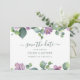Modern eucalyptus purple and green floral script handwriting save the date announcement card to let your family and friends know about your exciting news.