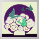 Green Purple Flower Bouquet & Butterflies Square Poster