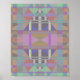 Colorful geometric shapes pattern, custom made artwork in prominent shades of green, purple, pink, blue and with additional shades of brown, gray, yellow, red, orange, gold. Elegant trendy digital art design.