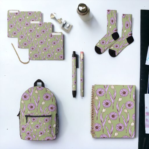 Green Purple Retro Flower Pattern Office & School Designed by Dia Sha