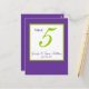 Green Purple Wedding Table Number Card Design by Elke Clarke ©2010. Customize with your personal information, wedding date and colors. Order one per table with each table number but still receive the bulk discount for total number ordered. Change the colors on the table number cards to match your wedding colors.