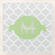 Protect your table and counter tops with a Green Quatrefoil Personalized Glass Coaster. Coaster design features a simple quatrefoil background and fancy emblem to personalize with your name and monogram. Additional gift items available with this design as well as a variety of colors.