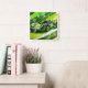 Green Race Car Watercolor Yellow Square Wall Clock