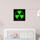 Black poster with green radiation symbol surrounded by "Danger - Radiation" in repeating green text.