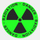 Danger - Radiation - black lettering and radiation symbol with bright green background.